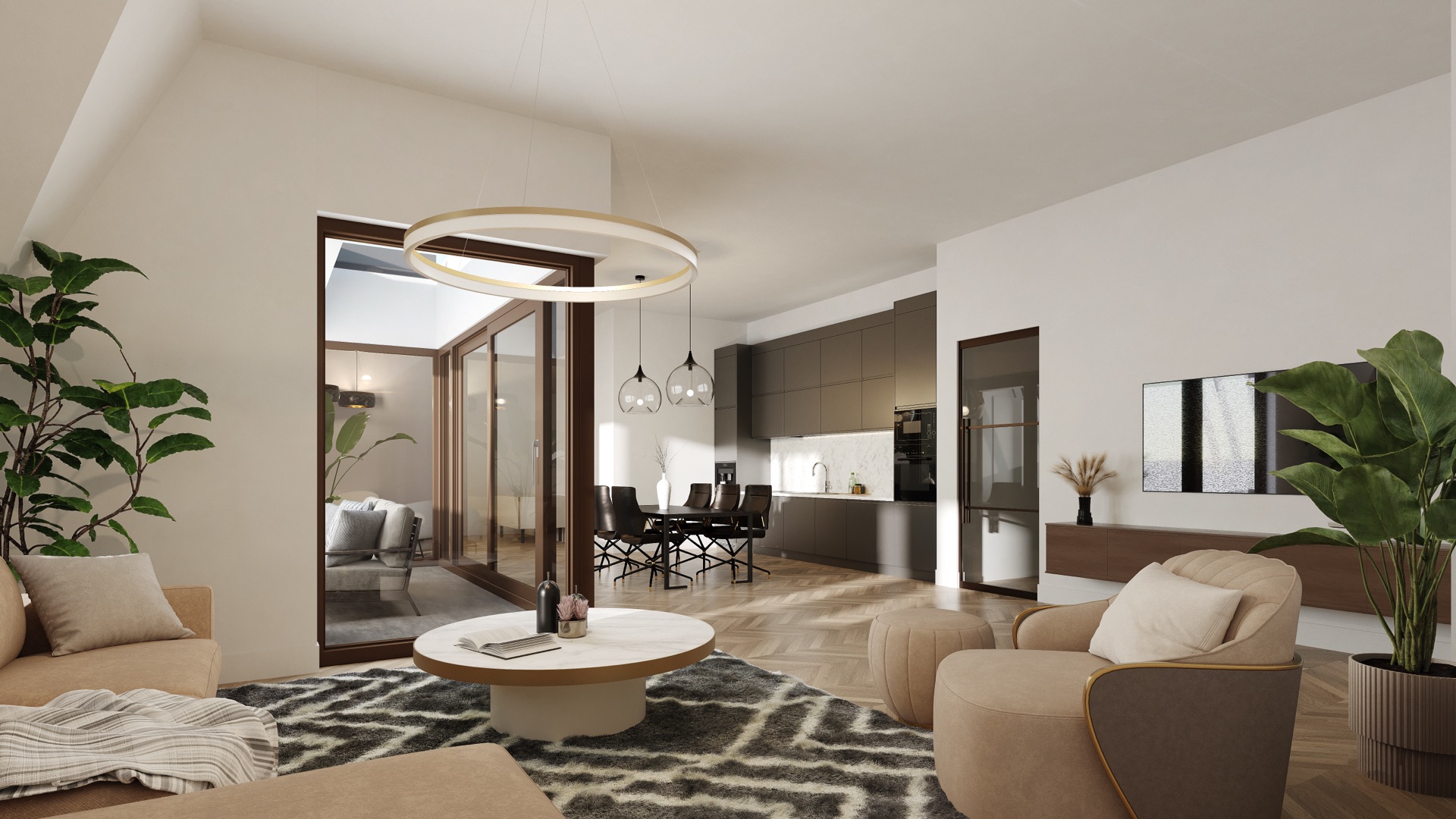– 1 penthouse met een woonoppervlakte van ca. 129 m² (2 slaapkamers);